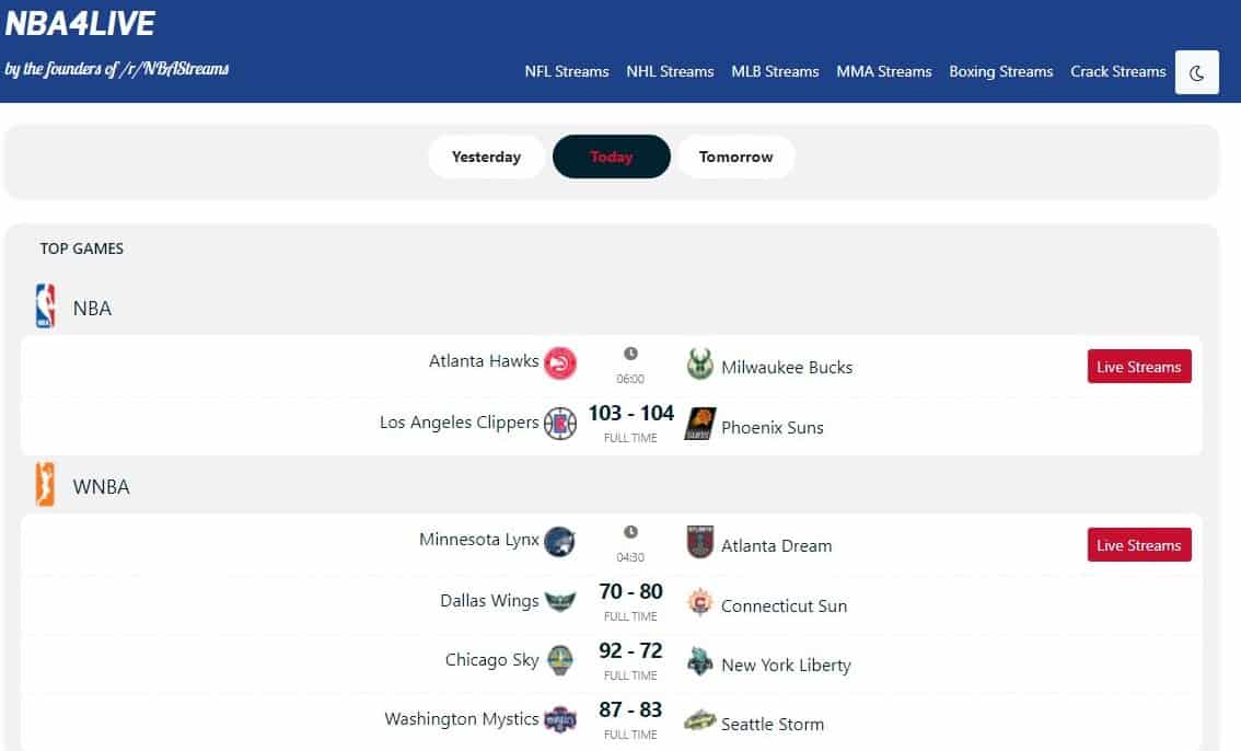 If you are an NBA fan/lover then buffstream is the best alternative to Reddit NBA Streams. You can watch all the live streams of NBA matches for free on this website. Also, this website loads pretty much faster therefore you do not have to face slow video/buffering problems. The video’s display quality is really good.