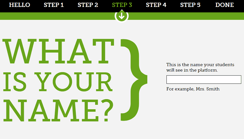 Type your name. Your students can see your name on this platform.